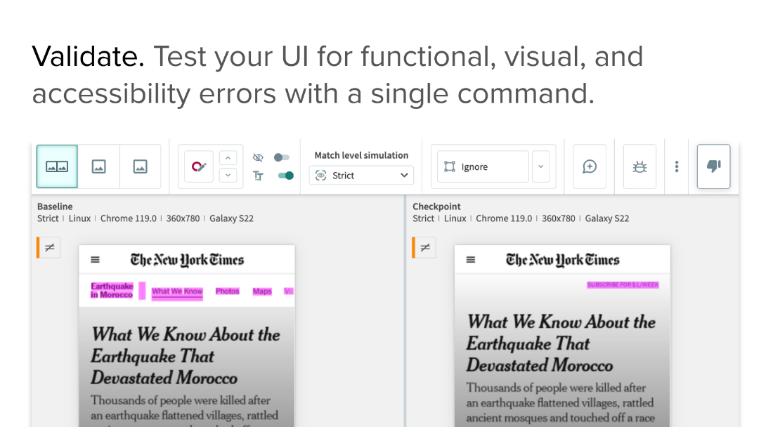 • Catch more bugs across any UI. For superior user satisfaction.