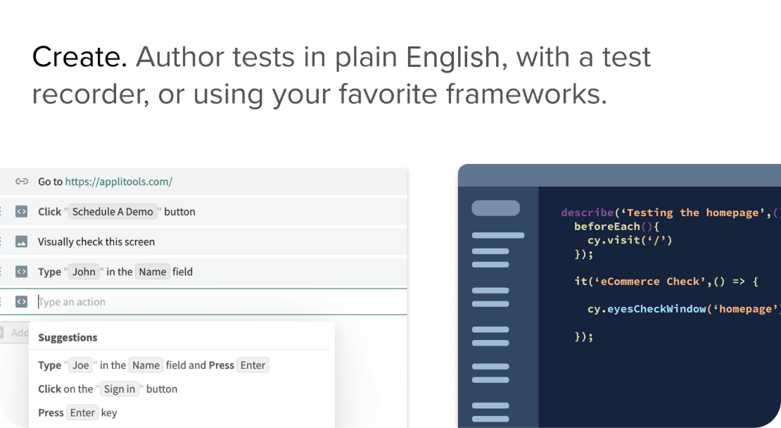 Applitools Intelligent Testing Platform consists of two main products: