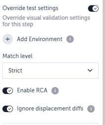 The following Applitools Eyes settings can be accessed via the Testim.io UI: