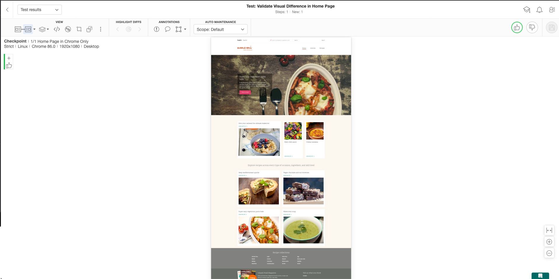 The site to demonstrate the concept is Drupal Umami, the major advantage being that the site is already constructed and we can directly focus on writing automated visual tests without having to worry about creating these pages.