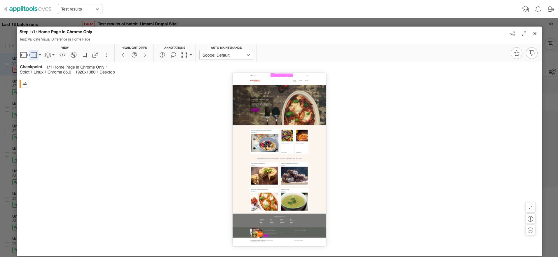 Also, notice that using the Applitools Batch feature, we have logically grouped the Test Results, to make it extremely readable.