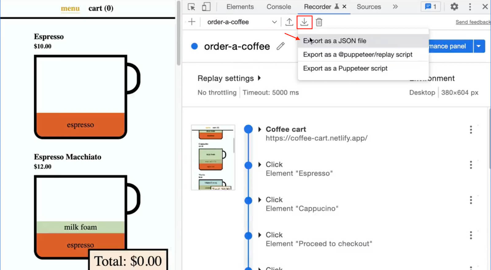 We’ll do so by recording a test on the Coffee cart website and exporting it as a Puppeteer Replay script. To top it off, we will be sprinkling some Applitools magic onto it and see how easy it is to integrate visual testing into the new tool. Let’s go!