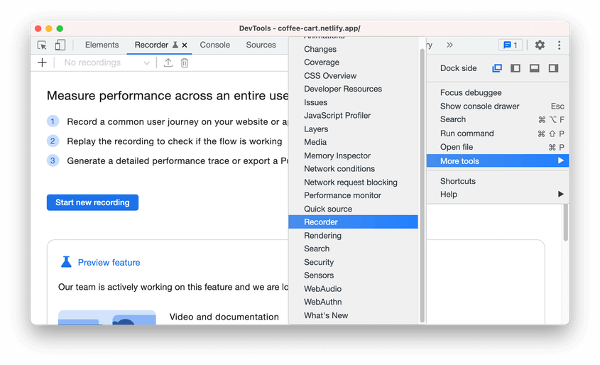 Chrome’s new Recorder tool allows you to record and replay tests from the browser, export them as a JSON file (and more), as well as measure test performance. The DevTools Recorder was released in November 2021, and you can read all about it here.