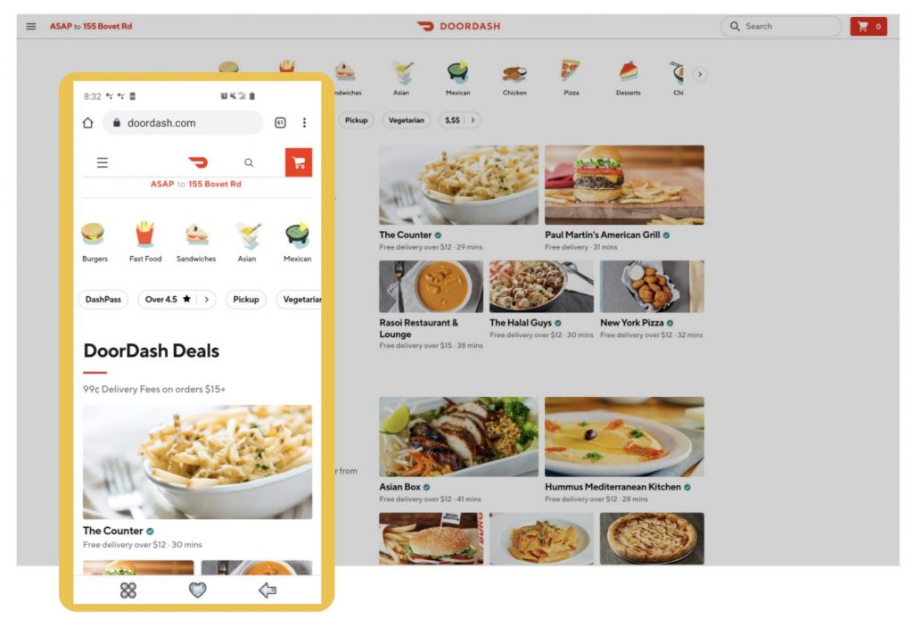 - On the web view, the address is on the top row to the right of the menu, but on mobile it’s on the 2nd row and centered
