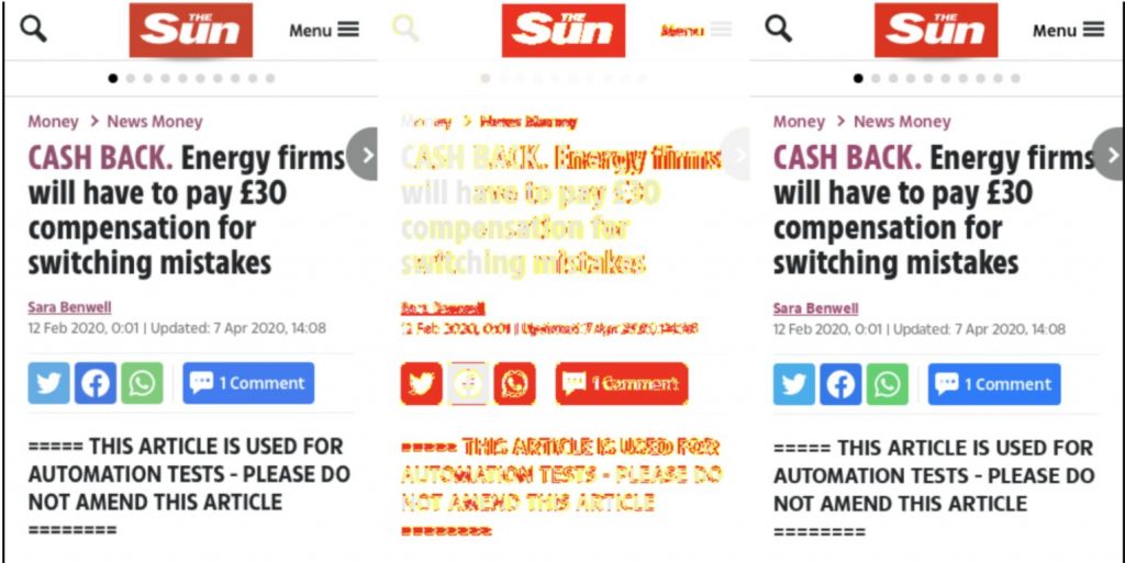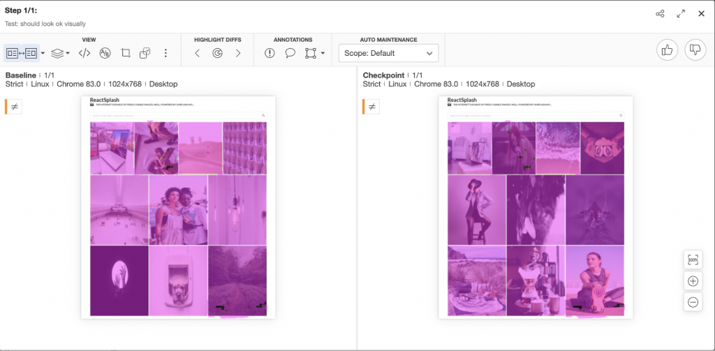 The problem with pixel-by-pixel visual testing though is it’s very sensitive even with small changes. Even if you have a 1px difference, your test will fail even though on the human eye, the two images look exactly similar.