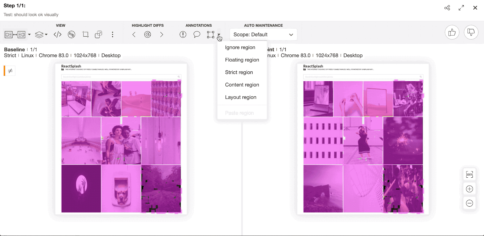 Problem with pixel-by-pixel visual testing