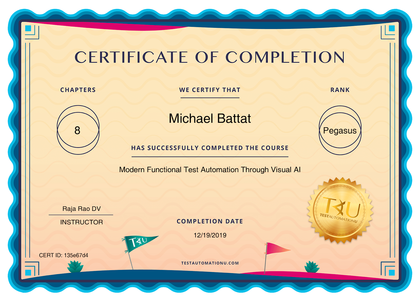 As always, whenever I complete a Test Automation University course