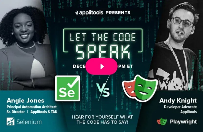 In the video below, you can see a head-to-head comparison of Playwright vs Selenium. Angie Jones and Andrew Knight take you through ten rounds of a straight-to-the-code battle, with the live audience deciding the winning framework for each round. Check it out for a unique look at the differences between Playwright and Selenium.