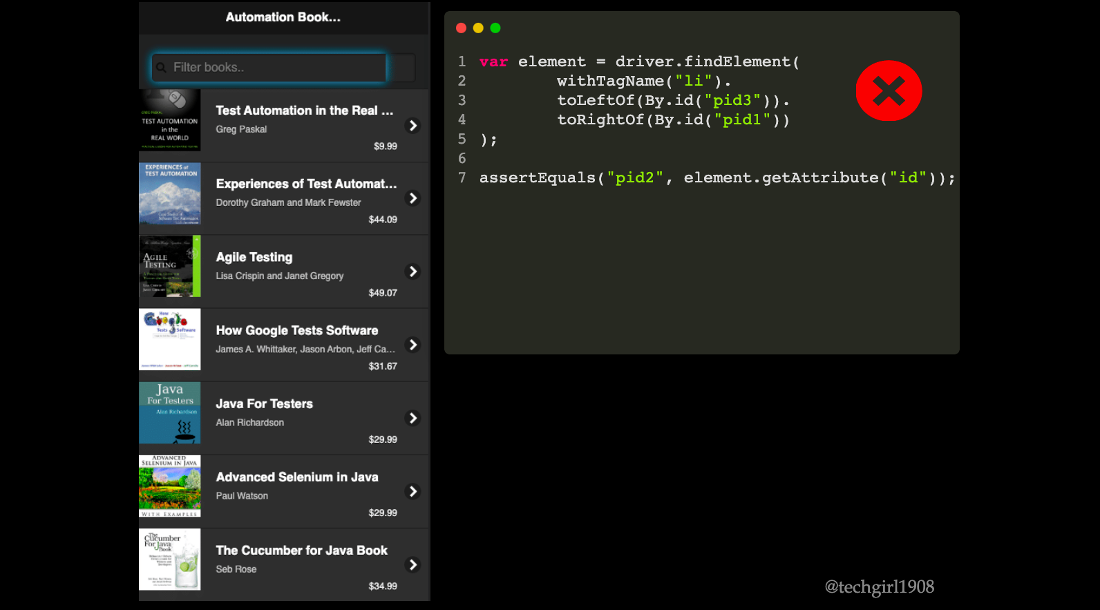 You’re correct. If you are going to test your application in various viewport sizes, then Relative Locators is not a great idea. As you can see here, our test immediately breaks when the application is placed in the dimensions of an iPhone because the positioning of the elements change.