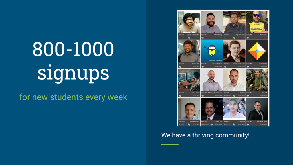 Every week, about 800 to 1000 new students sign up for TAU. That’s sustained, consistent growth. It’s awesome to see all the new students joining every week.
