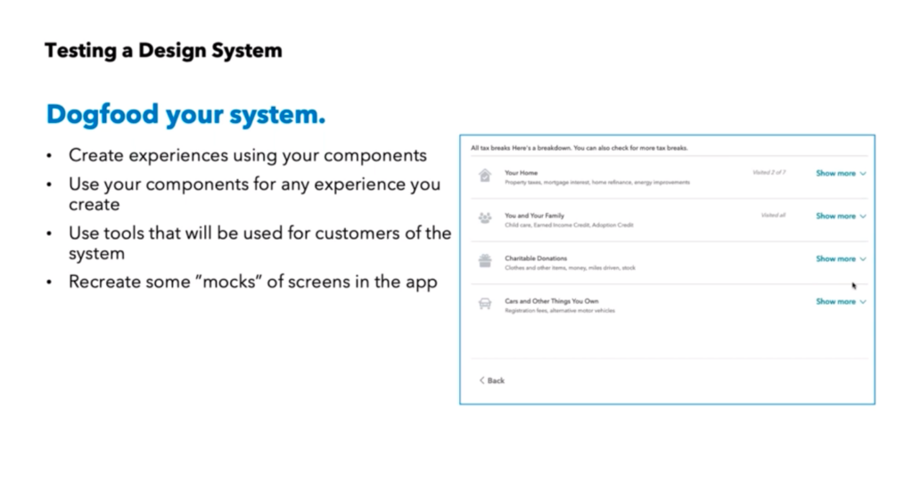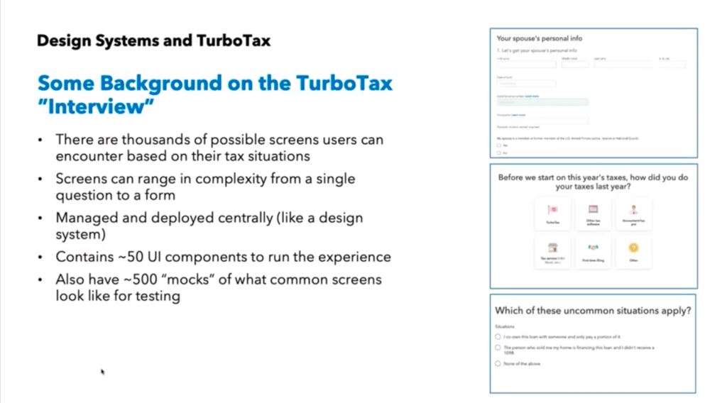 Next, Tyler dove into the use of design systems for the Intuit TurboTax product.