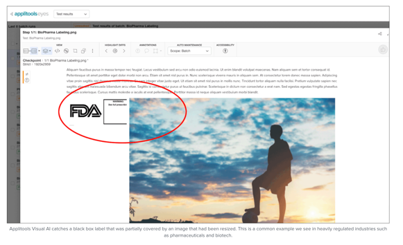The FDA’s General Principles of Software Validations recommends using visual regression testing for images and documents. The FDA makes this recommendation for companies using a software development lifecycle (SDLC) approach that integrates risk management strategies with validation and verification activities, including defect prevention practices.