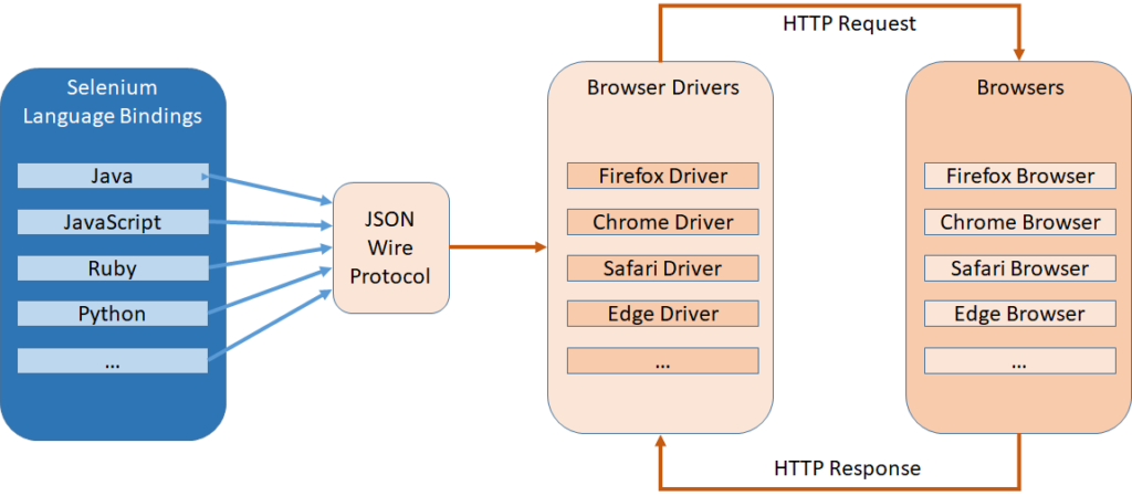 Figure 1 below shows the Selenium WebDriver architecture: