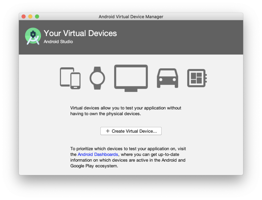 Click the + Create Virtual Device button.