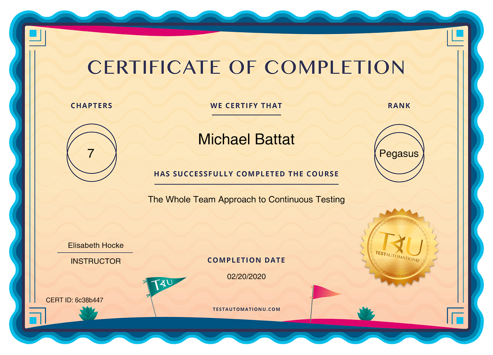 As always, I include my TAU certificate of completion: