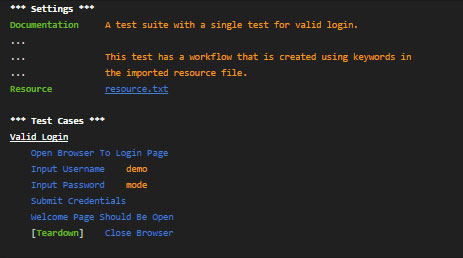 Below is an example of how a login operation is specified using keywords in Robot Framework: